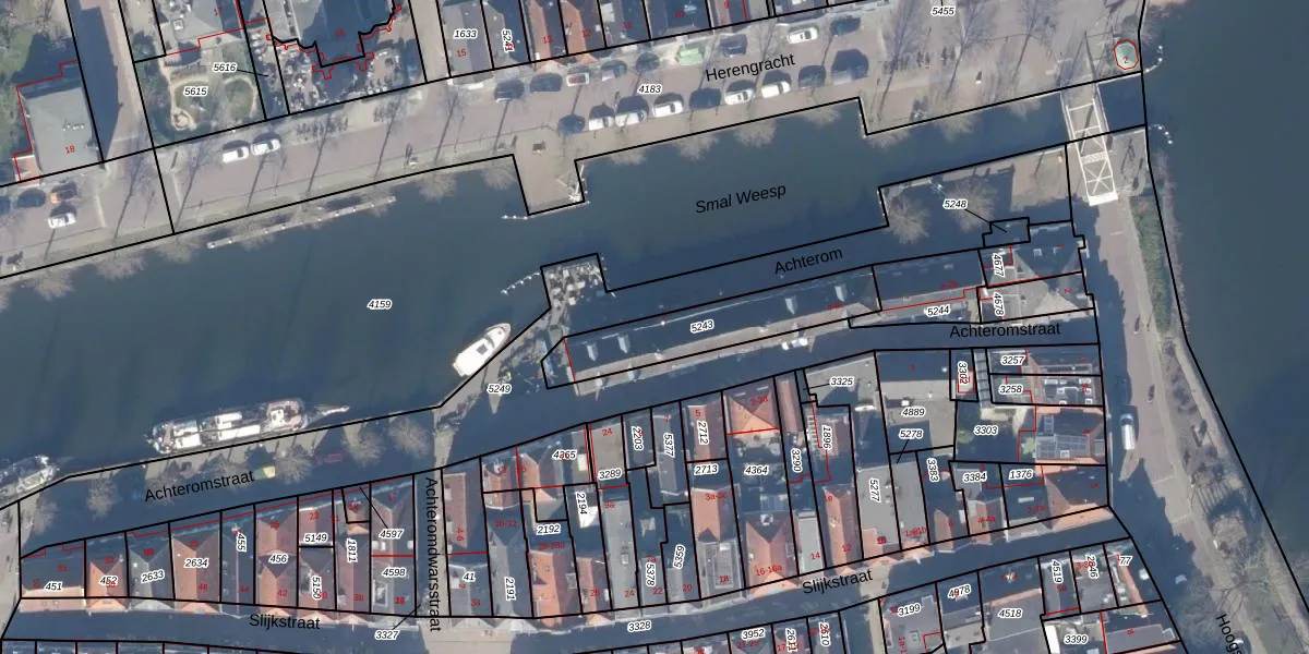 Het perceel waarop het adres ligt is WEE02-A-5243. De afkorting 'WEE02' staat voor kadastrale gemeente Weesp. De gemiddelde perceelgrootte in Weesp is 2523,05 m². Dit perceel is kleiner: de perceeloppervlakte bedraagt 350 m². Het grootste perceel in de kadastrale gemeente is 27,8 ha. Het kleinste perceel heeft een oppervlakte van 0 m². Op het perceel zijn 8 adressen aanwezig. De huidige grenzen van het perceel zijn digitaal in de Basisregistratie Kadaster (BRK) geregistreerd op 15-02-1999.