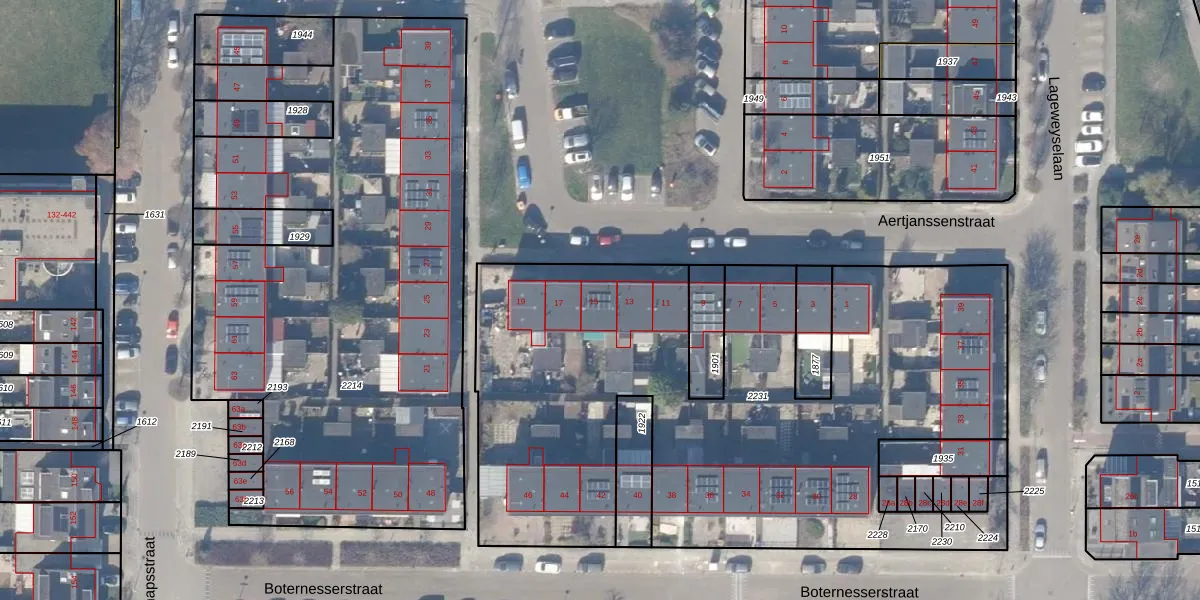 Het perceel waarop Aertjanssenstraat 15 staat heeft een oppervlakte van 3514 m². Dit is een zeer groot perceel. De perceeloppervlakte wordt geregistreerd door het Kadaster. Gedetailleerde informatie over de maten van dit perceel kunt u vinden in het rapport Kadastrale kaart met maatvoering van Aertjanssenstraat 15.