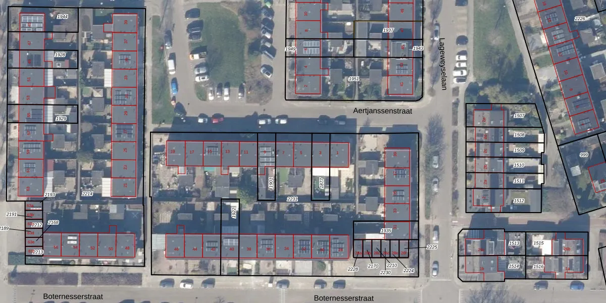 Het perceel waarop Aertjanssenstraat 5 staat heeft een oppervlakte van 3514 m². Dit is een zeer groot perceel. De perceeloppervlakte wordt geregistreerd door het Kadaster. Gedetailleerde informatie over de maten van dit perceel kunt u vinden in het rapport Kadastrale kaart met maatvoering van Aertjanssenstraat 5.
