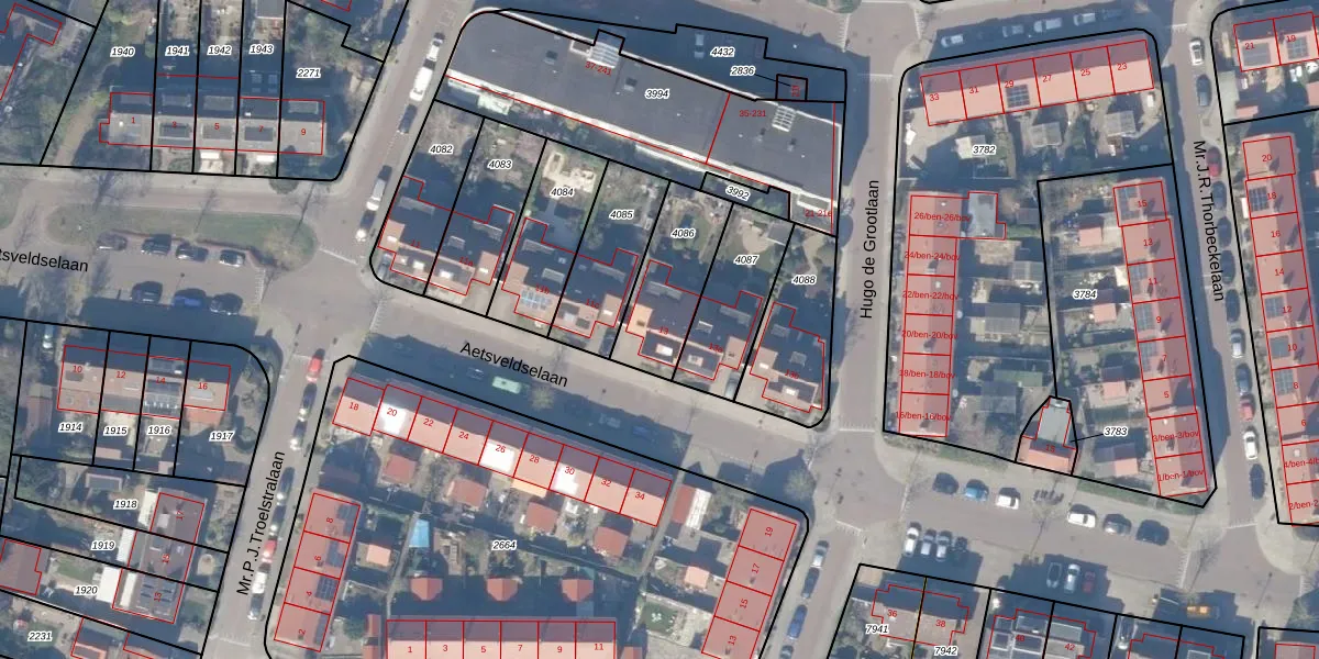 Gebruik de zoekbalk of klik op een perceel voor informatie over de adressen binnen dit perceel.