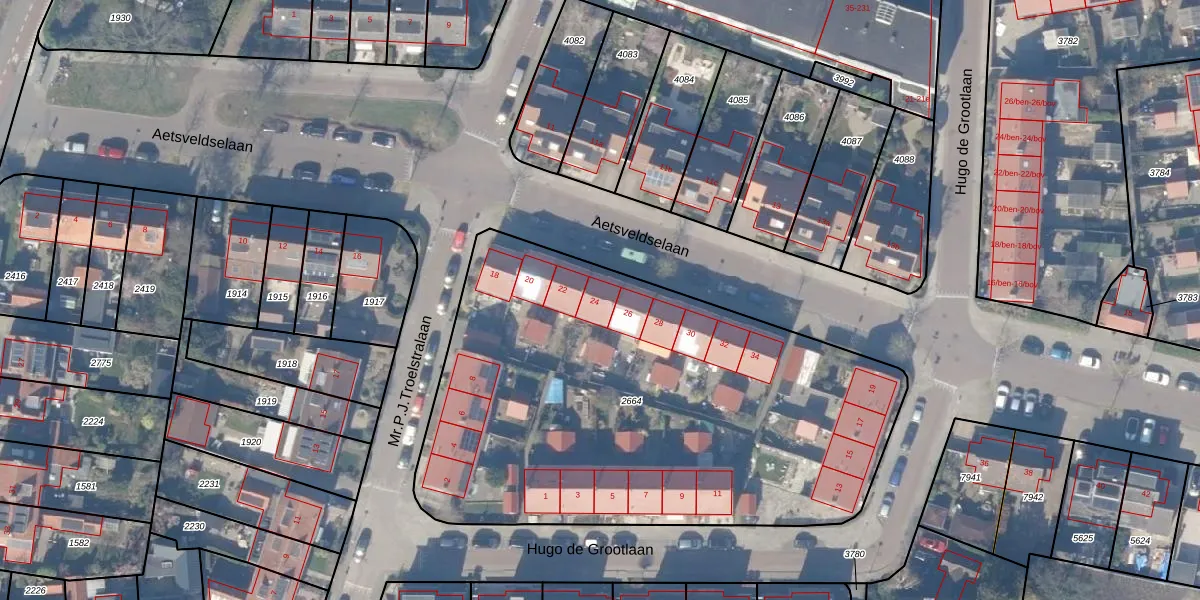 Aetsveldselaan 24 is gelegen op kadastraal perceel WEE02B2664. Deze kadastrale aanduiding is uniek en wordt gebruikt door het Kadaster om eigendomsrechten en andere zakelijke rechten vast te leggen. Het perceel maakt onderdeel uit van de kadastrale gemeente Weesp.