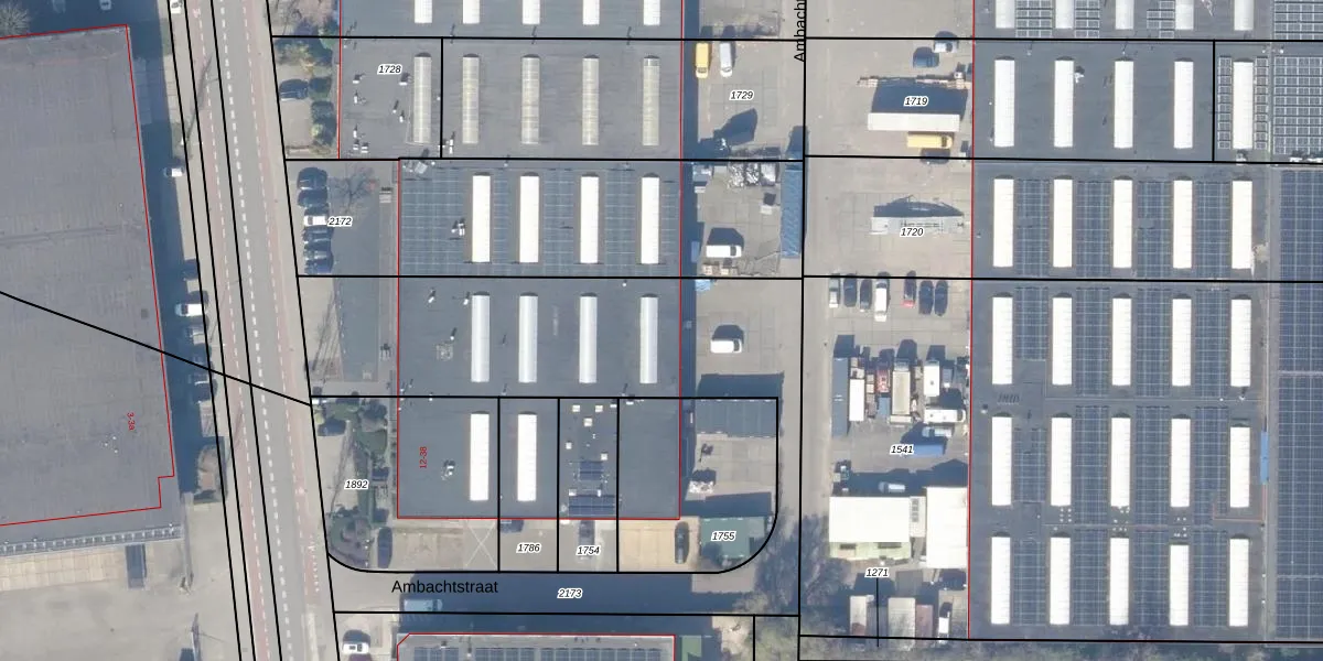 Het perceel waarop Ambachtstraat 25-A staat heeft een oppervlakte van 1929 m². Dit is een zeer groot perceel. De perceeloppervlakte wordt geregistreerd door het Kadaster. Gedetailleerde informatie over de maten van dit perceel kunt u vinden in het rapport Kadastrale kaart met maatvoering van Ambachtstraat 25-A.
