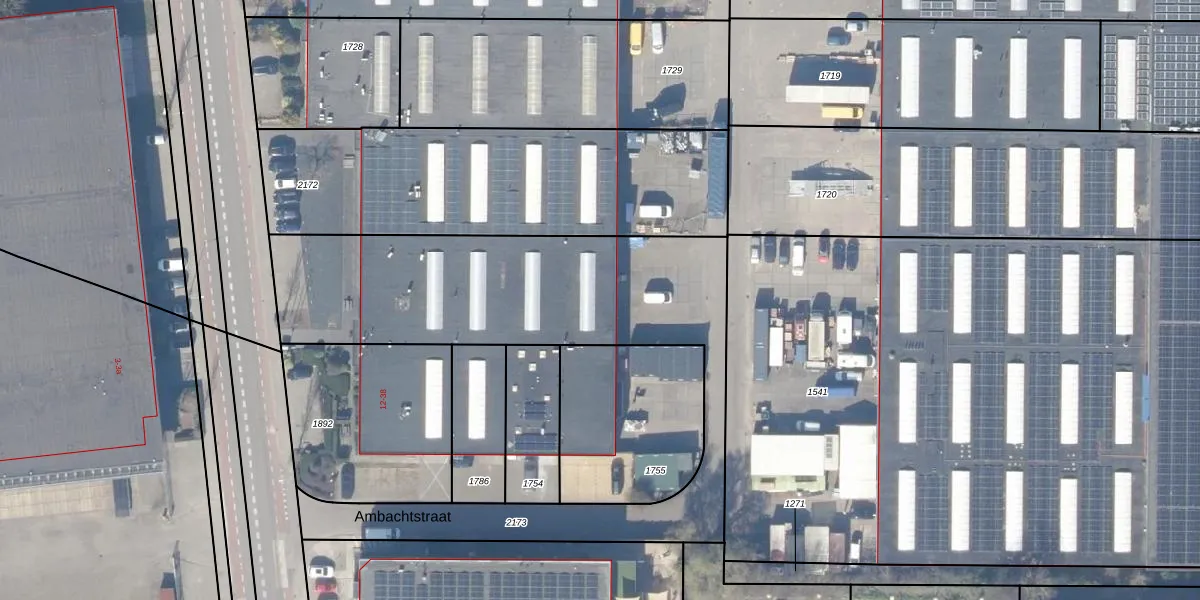 Het perceel waarop Ambachtstraat 25-B staat heeft een oppervlakte van 1929 m². Dit is een zeer groot perceel. De perceeloppervlakte wordt geregistreerd door het Kadaster. Gedetailleerde informatie over de maten van dit perceel kunt u vinden in het rapport Kadastrale kaart met maatvoering van Ambachtstraat 25-B.