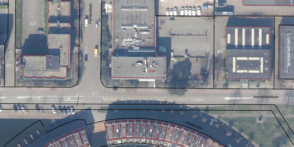 Het perceel waarop Amstellandlaan 80 staat heeft een oppervlakte van 4518 m². Dit is een zeer groot perceel. De perceeloppervlakte wordt geregistreerd door het Kadaster. Gedetailleerde informatie over de maten van dit perceel kunt u vinden in het rapport Kadastrale kaart met maatvoering van Amstellandlaan 80.