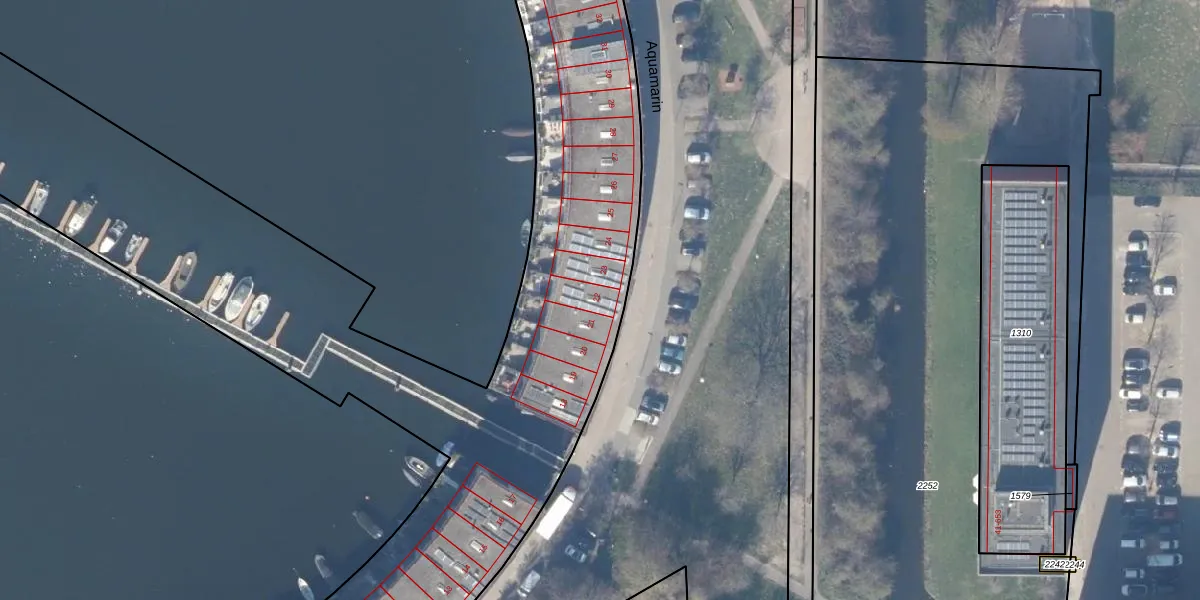 Het perceel waarop Aquamarin 22 staat heeft een oppervlakte van 1,1 ha. Dit is een zeer groot perceel. De perceeloppervlakte wordt geregistreerd door het Kadaster. Gedetailleerde informatie over de maten van dit perceel kunt u vinden in het rapport Kadastrale kaart met maatvoering van Aquamarin 22.