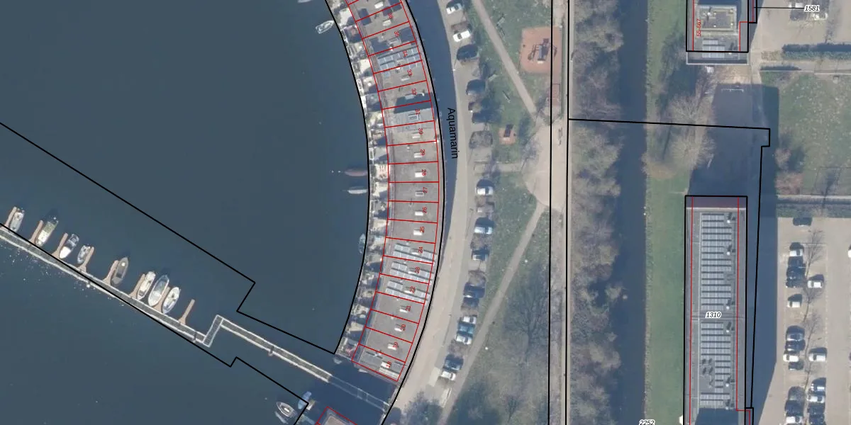 Het perceel waarop Aquamarin 26 staat heeft een oppervlakte van 1,1 ha. Dit is een zeer groot perceel. De perceeloppervlakte wordt geregistreerd door het Kadaster. Gedetailleerde informatie over de maten van dit perceel kunt u vinden in het rapport Kadastrale kaart met maatvoering van Aquamarin 26.