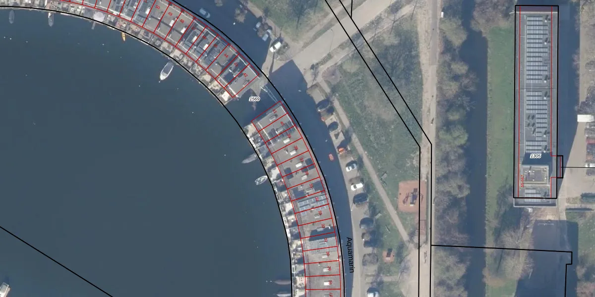 Het perceel waarop Aquamarin 38 staat heeft een oppervlakte van 1,1 ha. Dit is een zeer groot perceel. De perceeloppervlakte wordt geregistreerd door het Kadaster. Gedetailleerde informatie over de maten van dit perceel kunt u vinden in het rapport Kadastrale kaart met maatvoering van Aquamarin 38.