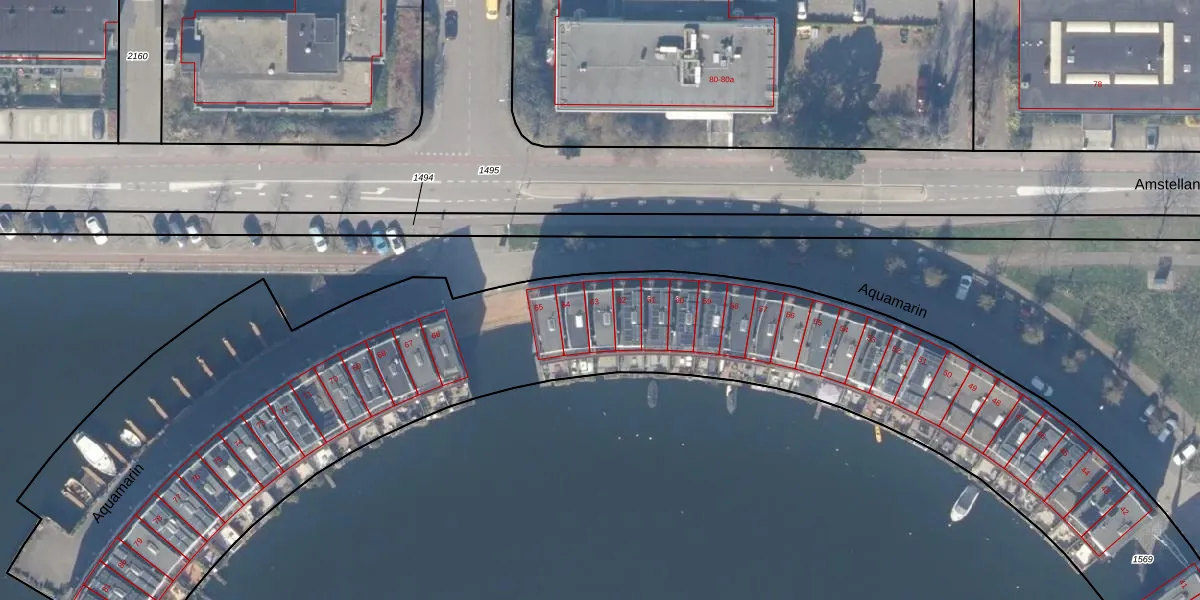 Het perceel waarop Aquamarin 63 staat heeft een oppervlakte van 1,1 ha. Dit is een zeer groot perceel. De perceeloppervlakte wordt geregistreerd door het Kadaster. Gedetailleerde informatie over de maten van dit perceel kunt u vinden in het rapport Kadastrale kaart met maatvoering van Aquamarin 63.