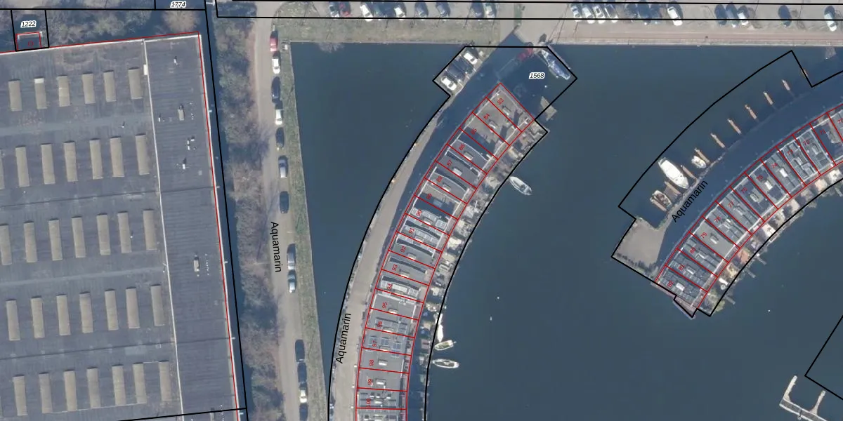 Het perceel waarop Aquamarin 90 staat heeft een oppervlakte van 3565 m². Dit is een zeer groot perceel. De perceeloppervlakte wordt geregistreerd door het Kadaster. Gedetailleerde informatie over de maten van dit perceel kunt u vinden in het rapport Kadastrale kaart met maatvoering van Aquamarin 90.