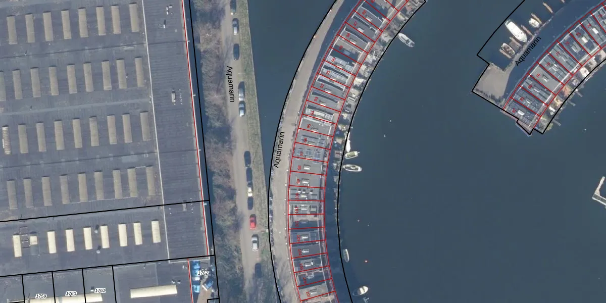 Het perceel waarop Aquamarin 97 staat heeft een oppervlakte van 3565 m². Dit is een zeer groot perceel. De perceeloppervlakte wordt geregistreerd door het Kadaster. Gedetailleerde informatie over de maten van dit perceel kunt u vinden in het rapport Kadastrale kaart met maatvoering van Aquamarin 97.