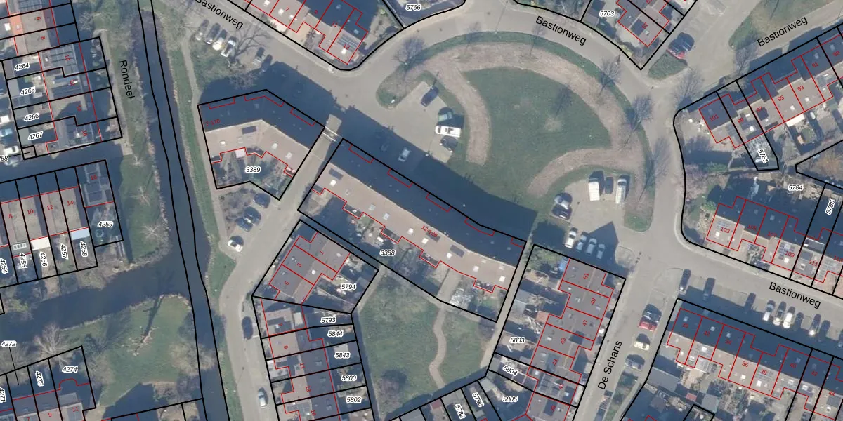 Het perceel waarop Bastionweg 20 staat heeft een oppervlakte van 1057 m². Dit is een zeer groot perceel. De perceeloppervlakte wordt geregistreerd door het Kadaster. Gedetailleerde informatie over de maten van dit perceel kunt u vinden in het rapport Kadastrale kaart met maatvoering van Bastionweg 20.