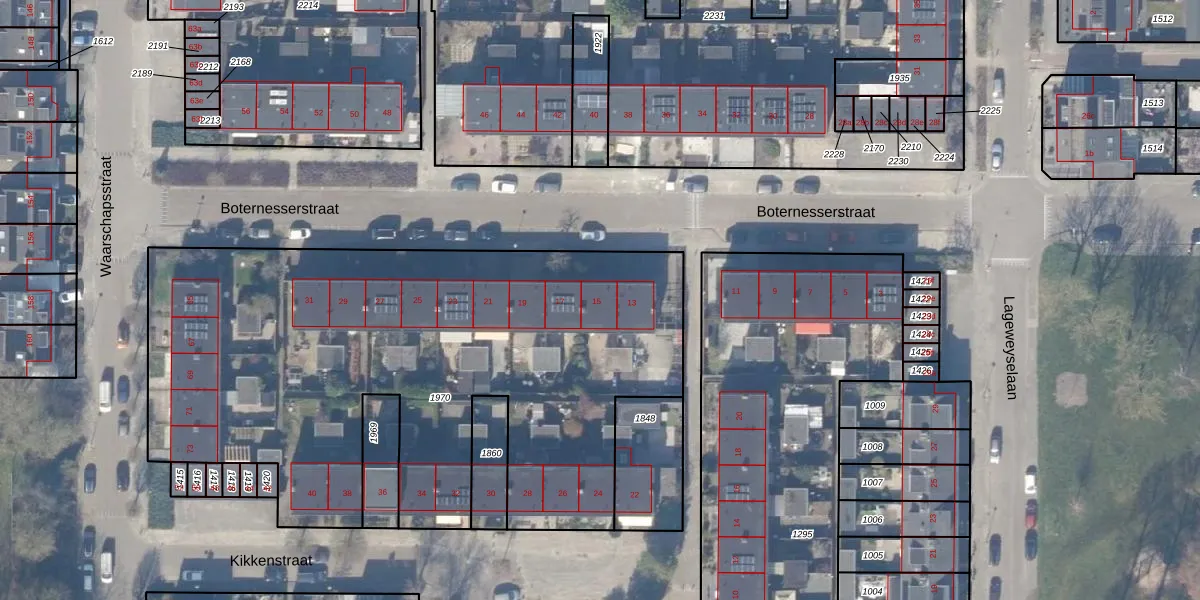 Boternesserstraat 15 is gelegen op kadastraal perceel WEE02C1970. Deze kadastrale aanduiding is uniek en wordt gebruikt door het Kadaster om eigendomsrechten en andere zakelijke rechten vast te leggen. Het perceel maakt onderdeel uit van de kadastrale gemeente Weesp.
