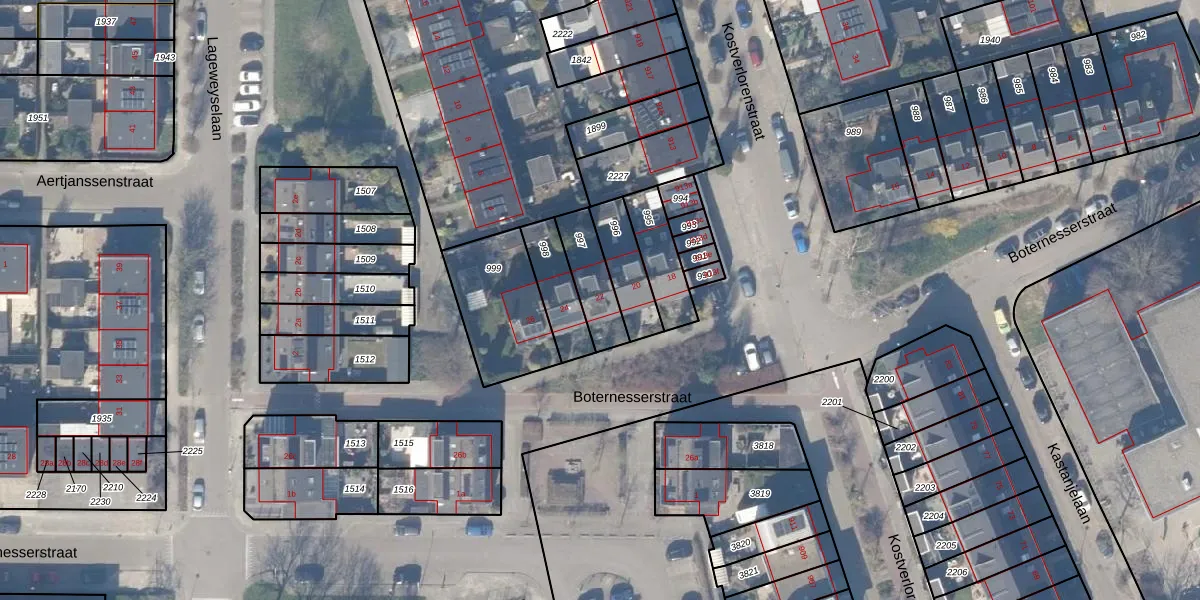 Gebruik de zoekbalk of klik op een perceel voor informatie over de adressen binnen dit perceel.
