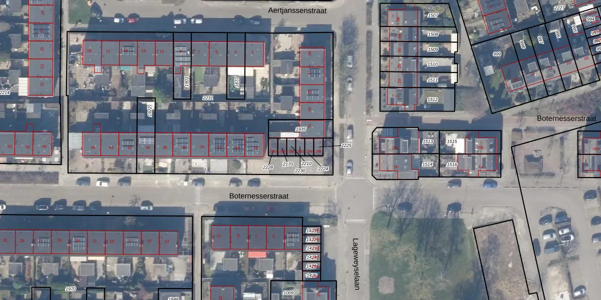 Het perceel waarop Boternesserstraat 28-d staat heeft een oppervlakte van 18 m². Dit is een klein perceel. De perceeloppervlakte wordt geregistreerd door het Kadaster. Gedetailleerde informatie over de maten van dit perceel kunt u vinden in het rapport Kadastrale kaart met maatvoering van Boternesserstraat 28-d.