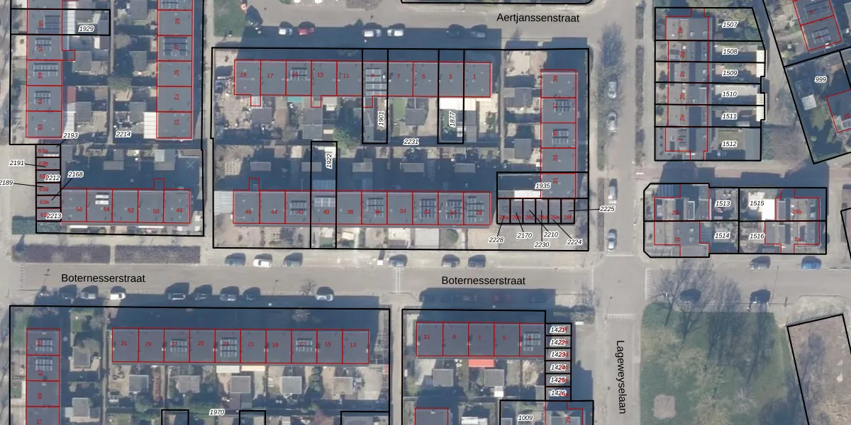 Het perceel waarop Boternesserstraat 32 staat heeft een oppervlakte van 3514 m². Dit is een zeer groot perceel. De perceeloppervlakte wordt geregistreerd door het Kadaster. Gedetailleerde informatie over de maten van dit perceel kunt u vinden in het rapport Kadastrale kaart met maatvoering van Boternesserstraat 32.