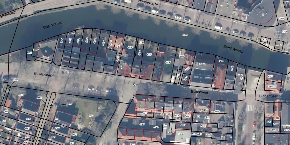 Buitenveer 34 is gelegen op kadastraal perceel WEE02A3428. Deze kadastrale aanduiding is uniek en wordt gebruikt door het Kadaster om eigendomsrechten en andere zakelijke rechten vast te leggen. Het perceel maakt onderdeel uit van de kadastrale gemeente Weesp.