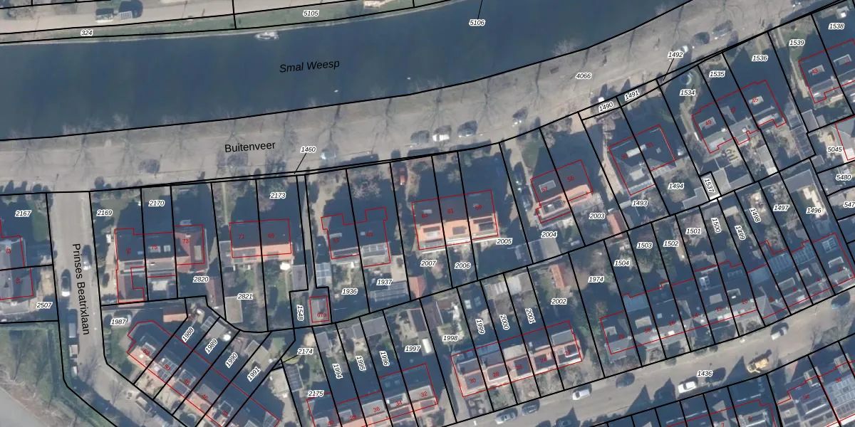 Buitenveer 63 is gelegen op kadastraal perceel WEE02B2007. Deze kadastrale aanduiding is uniek en wordt gebruikt door het Kadaster om eigendomsrechten en andere zakelijke rechten vast te leggen. Het perceel maakt onderdeel uit van de kadastrale gemeente Weesp.