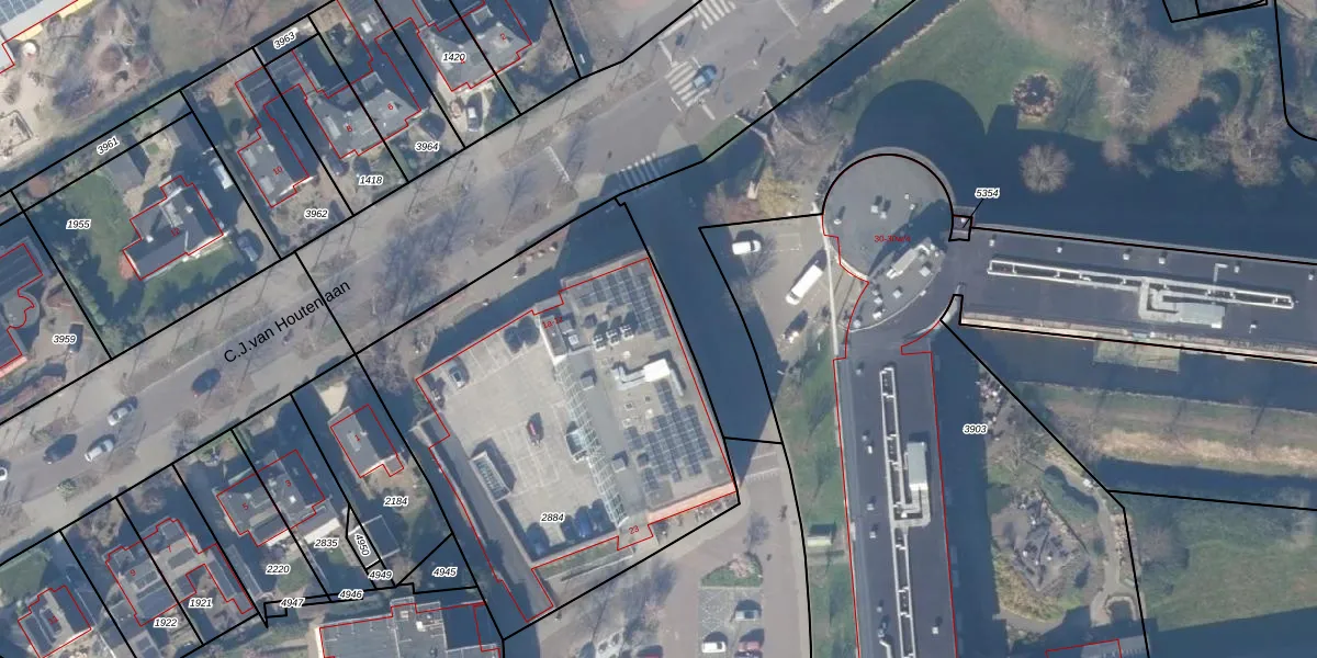 C.J.van Houtenlaan 1-r is gelegen op kadastraal perceel WEE02B2884. Deze kadastrale aanduiding is uniek en wordt gebruikt door het Kadaster om eigendomsrechten en andere zakelijke rechten vast te leggen. Het perceel maakt onderdeel uit van de kadastrale gemeente Weesp.