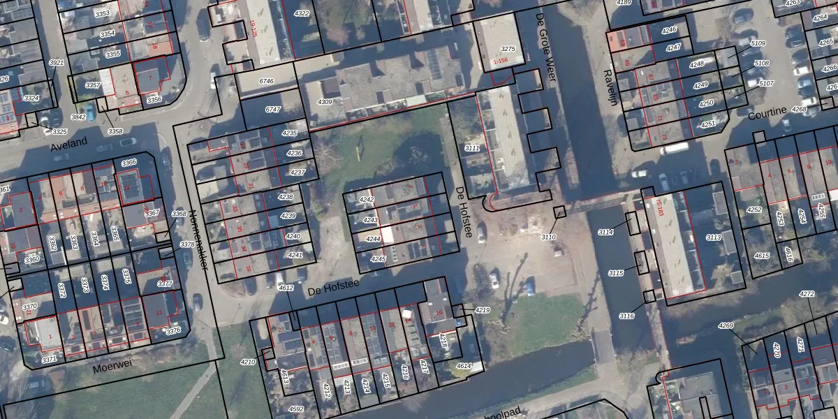 Gebruik de zoekbalk of klik op een perceel voor informatie over de adressen binnen dit perceel.