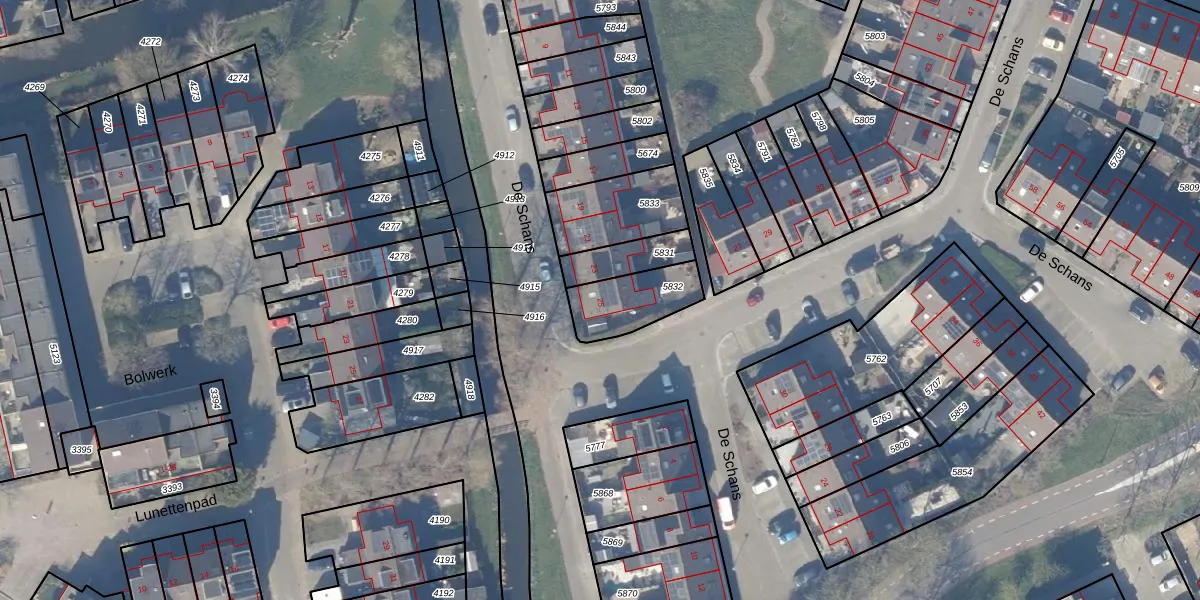 Het perceel waarop De Schans 25 staat heeft een oppervlakte van 195 m². Dit is een middelgroot perceel. De perceeloppervlakte wordt geregistreerd door het Kadaster. Gedetailleerde informatie over de maten van dit perceel kunt u vinden in het rapport Kadastrale kaart met maatvoering van De Schans 25.