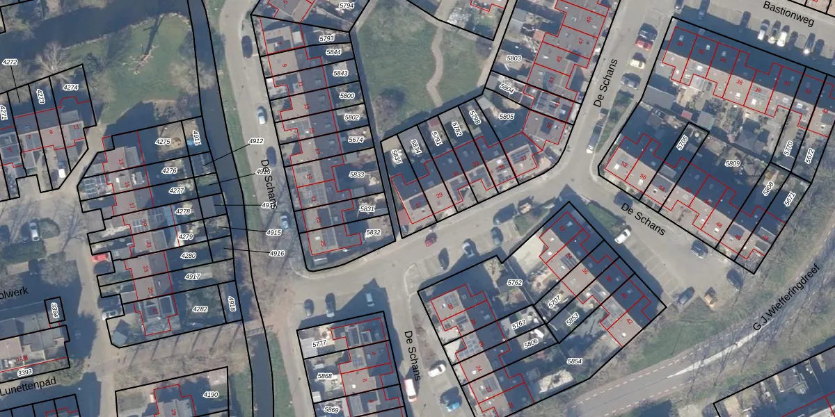 Het perceel waarop De Schans 27 staat heeft een oppervlakte van 155 m². Dit is een middelgroot perceel. De perceeloppervlakte wordt geregistreerd door het Kadaster. Gedetailleerde informatie over de maten van dit perceel kunt u vinden in het rapport Kadastrale kaart met maatvoering van De Schans 27.