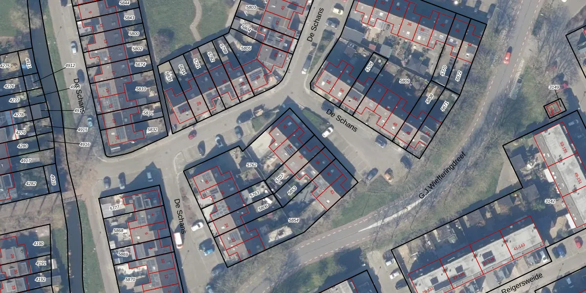 Het perceel waarop De Schans 34 staat heeft een oppervlakte van 595 m². Dit is een groot perceel. De perceeloppervlakte wordt geregistreerd door het Kadaster. Gedetailleerde informatie over de maten van dit perceel kunt u vinden in het rapport Kadastrale kaart met maatvoering van De Schans 34.