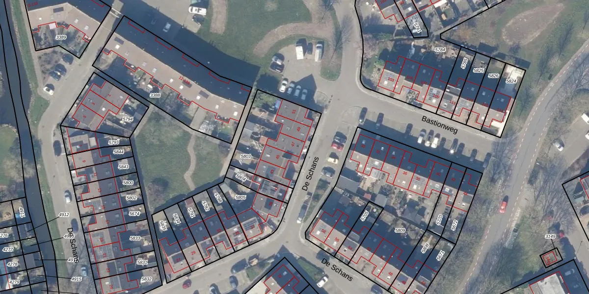 Het perceel waarop De Schans 47 staat heeft een oppervlakte van 634 m². Dit is een groot perceel. De perceeloppervlakte wordt geregistreerd door het Kadaster. Gedetailleerde informatie over de maten van dit perceel kunt u vinden in het rapport Kadastrale kaart met maatvoering van De Schans 47.