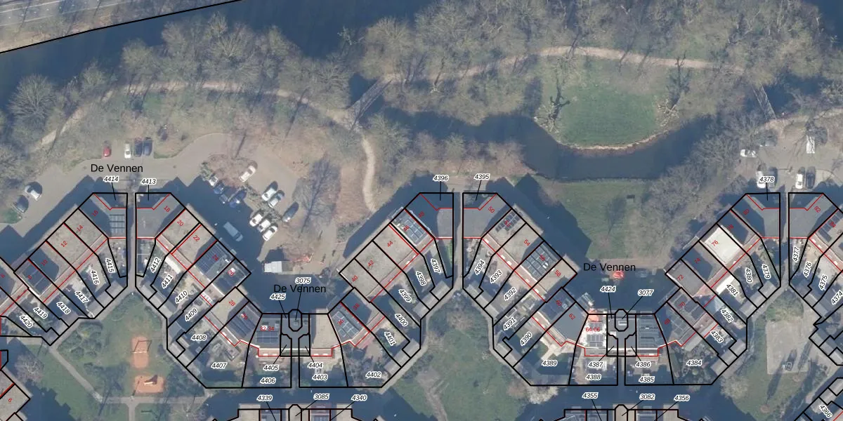 Gebruik de zoekbalk of klik op een perceel voor informatie over de adressen binnen dit perceel.