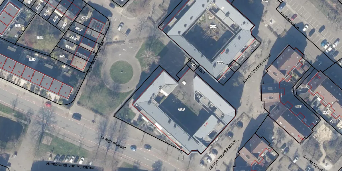 Het perceel waarop Dichtershof 17 staat heeft een oppervlakte van 2158 m². Dit is een zeer groot perceel. De perceeloppervlakte wordt geregistreerd door het Kadaster. Gedetailleerde informatie over de maten van dit perceel kunt u vinden in het rapport Kadastrale kaart met maatvoering van Dichtershof 17.