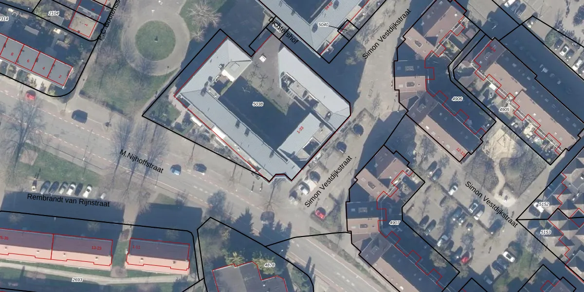 Het adres is gelegen op perceel 5038 in de sectie B en de kadastrale gemeente Weesp. De kadastrale aanduiding is aldus WEE02-B-5038. Het perceel is 2158 m² groot. Dat is kleiner dan de gemiddelde perceeloppervlakte in Weesp, dat op 2523,05 m² ligt. De grootste perceeloppervlakte in de kadastrale gemeente is 27,8 ha. De kleinste oppervlakte bedraagt 0 m². Op het perceel zijn 34 adressen aanwezig. De huidige grenzen van het perceel zijn digitaal in de Basisregistratie Kadaster (BRK) geregistreerd op 08-09-2011.