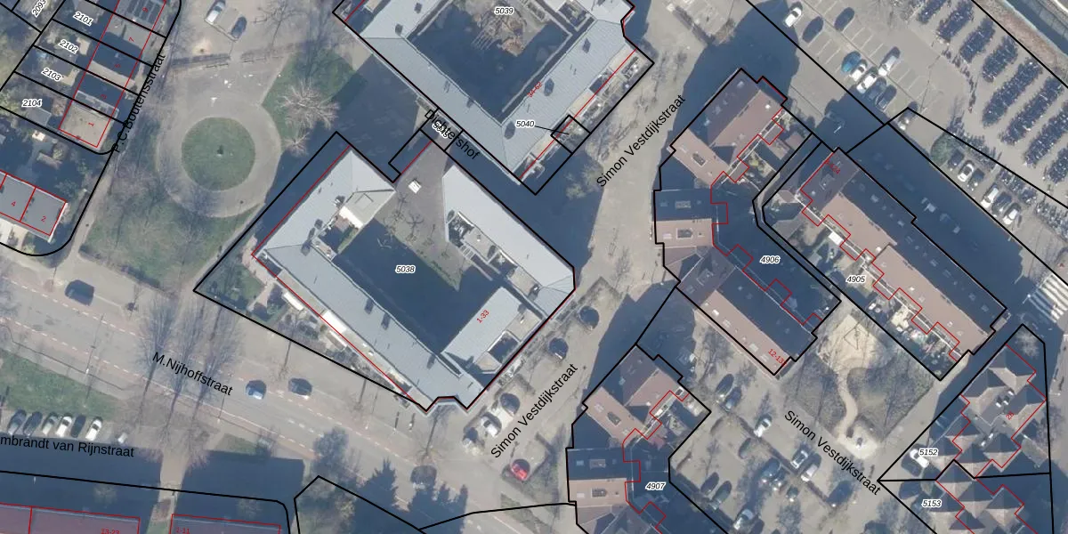 Het perceel waarop Dichtershof 20 staat heeft een oppervlakte van 2158 m². Dit is een zeer groot perceel. De perceeloppervlakte wordt geregistreerd door het Kadaster. Gedetailleerde informatie over de maten van dit perceel kunt u vinden in het rapport Kadastrale kaart met maatvoering van Dichtershof 20.
