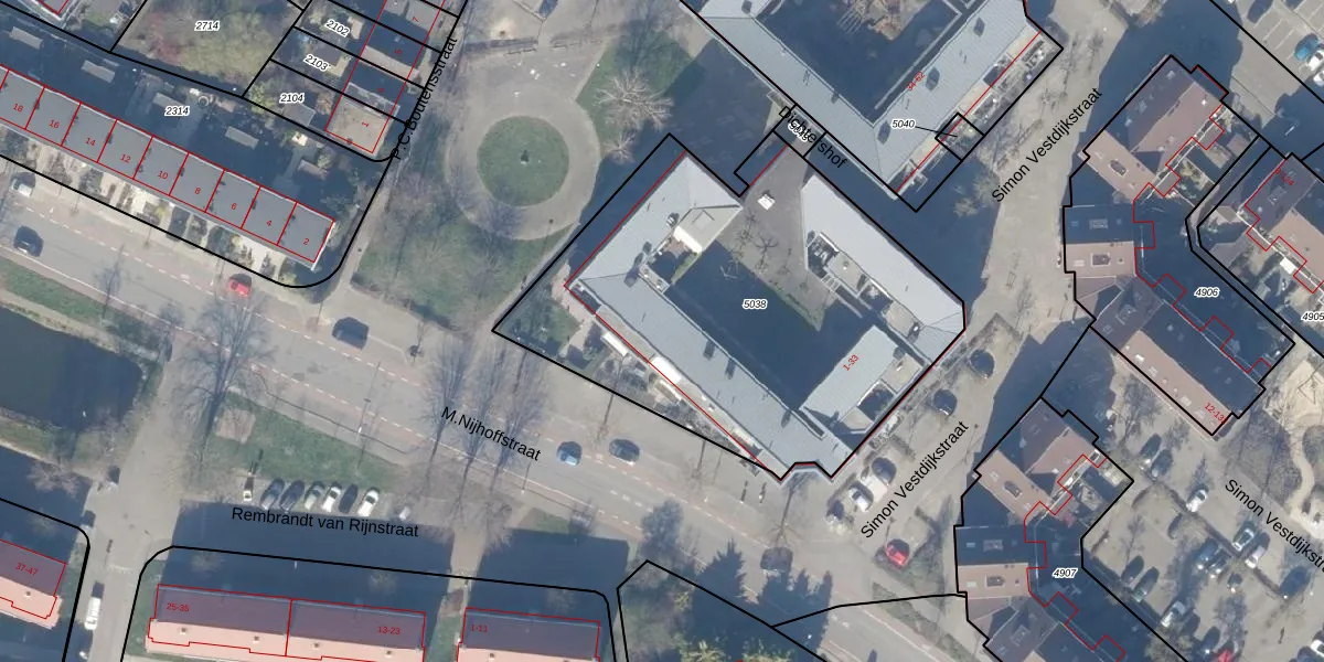 Het adres is gelegen op perceel 5038 in de sectie B en de kadastrale gemeente Weesp. De kadastrale aanduiding is aldus WEE02-B-5038. Het perceel is 2158 m² groot. Dat is kleiner dan de gemiddelde perceeloppervlakte in Weesp, dat op 2523,05 m² ligt. De grootste perceeloppervlakte in de kadastrale gemeente is 27,8 ha. De kleinste oppervlakte bedraagt 0 m². Op het perceel zijn 34 adressen aanwezig. In de Basisregistratie Kadaster (BRK) werden de grenzen van het perceel geregistreerd op 08-09-2011.