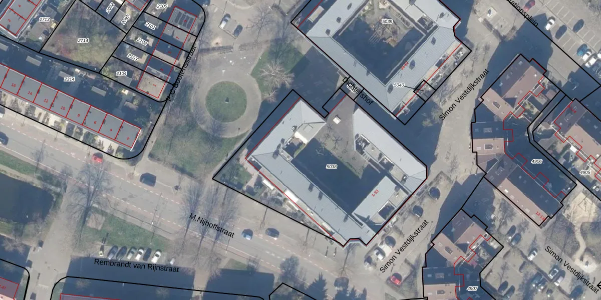 Het adres is gelegen op perceel 5038 in de sectie B en de kadastrale gemeente Weesp. De kadastrale aanduiding is aldus WEE02-B-5038. Het perceel is 2158 m² groot. Dat is kleiner dan de gemiddelde perceeloppervlakte in Weesp, dat op 2523,05 m² ligt. De grootste perceeloppervlakte in de kadastrale gemeente is 27,8 ha. De kleinste oppervlakte bedraagt 0 m². Op het perceel liggen in totaal 34 adressen. De huidige grenzen van het perceel zijn digitaal in de Basisregistratie Kadaster (BRK) geregistreerd op 08-09-2011.