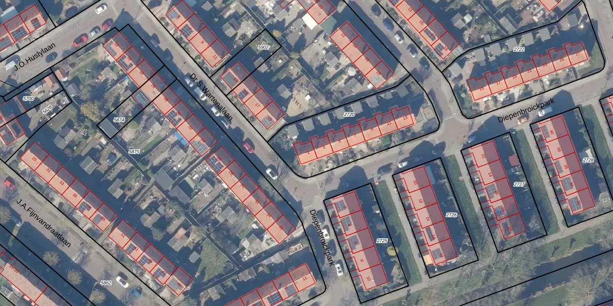 Het perceel waarop Diepenbroickpark 1 staat heeft een oppervlakte van 943 m². Dit is een groot perceel. De perceeloppervlakte wordt geregistreerd door het Kadaster. Gedetailleerde informatie over de maten van dit perceel kunt u vinden in het rapport Kadastrale kaart met maatvoering van Diepenbroickpark 1.