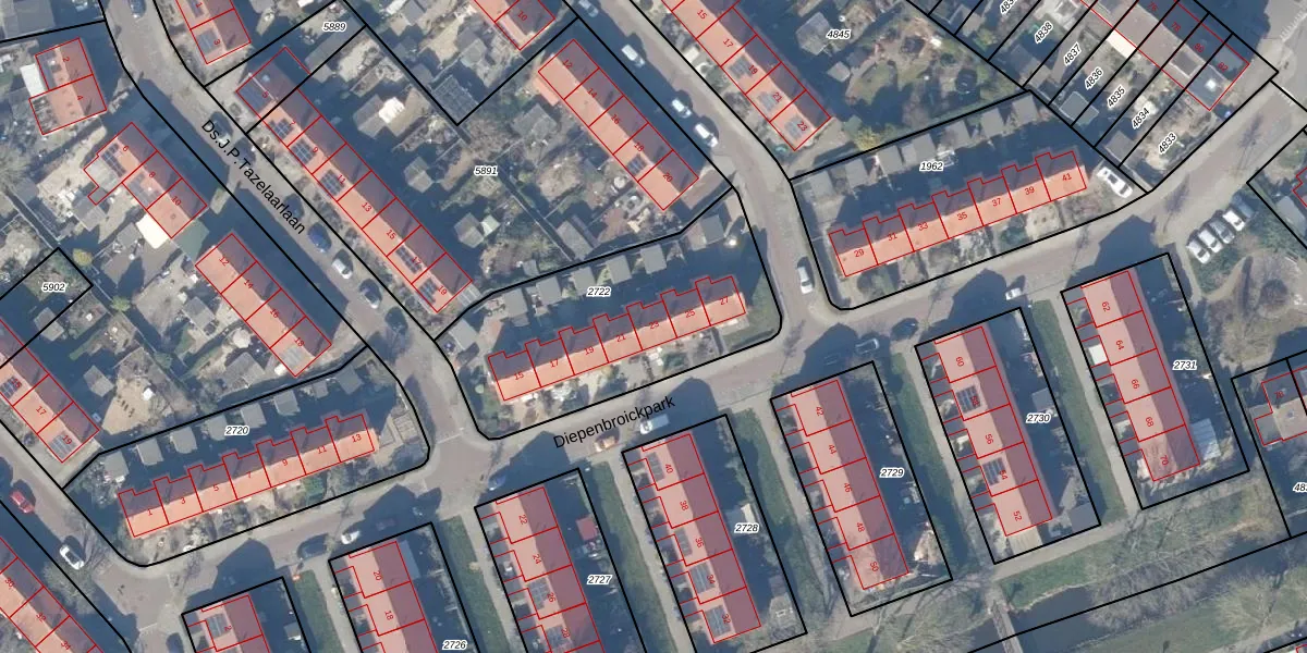Het perceel waarop Diepenbroickpark 23 staat heeft een oppervlakte van 989 m². Dit is een groot perceel. De perceeloppervlakte wordt geregistreerd door het Kadaster. Gedetailleerde informatie over de maten van dit perceel kunt u vinden in het rapport Kadastrale kaart met maatvoering van Diepenbroickpark 23.