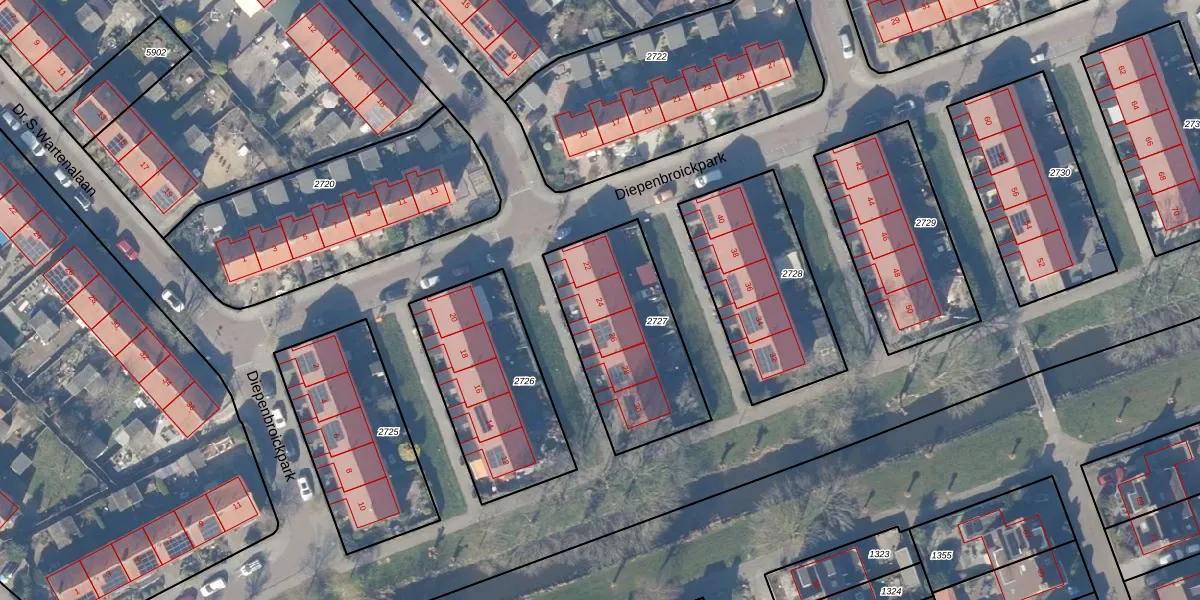 Diepenbroickpark 24 is gelegen op kadastraal perceel WEE02B2727. Deze kadastrale aanduiding is uniek en wordt gebruikt door het Kadaster om eigendomsrechten en andere zakelijke rechten vast te leggen. Het perceel maakt onderdeel uit van de kadastrale gemeente Weesp.