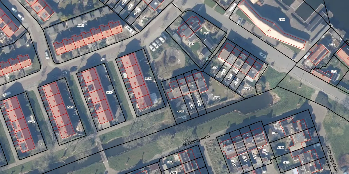 Gebruik de zoekbalk of klik op een perceel voor informatie over de adressen binnen dit perceel.