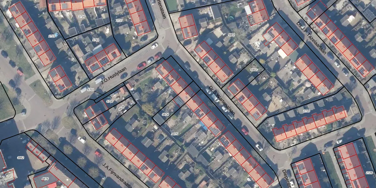 Dr.S.Wartenalaan 16 is gelegen op kadastraal perceel WEE02B5874. Deze kadastrale aanduiding is uniek en wordt gebruikt door het Kadaster om eigendomsrechten en andere zakelijke rechten vast te leggen. Het perceel maakt onderdeel uit van de kadastrale gemeente Weesp.