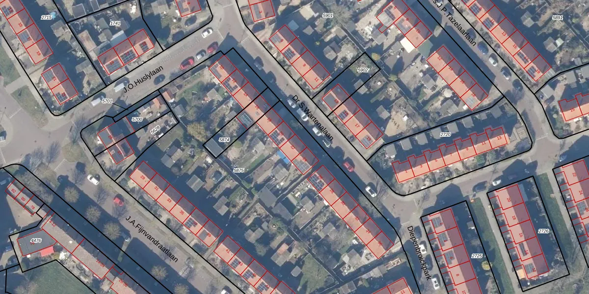 Het perceel waarop Dr.S.Wartenalaan 22 staat heeft een oppervlakte van 5290 m². Dit is een zeer groot perceel. De perceeloppervlakte wordt geregistreerd door het Kadaster. Gedetailleerde informatie over de maten van dit perceel kunt u vinden in het rapport Kadastrale kaart met maatvoering van Dr.S.Wartenalaan 22.
