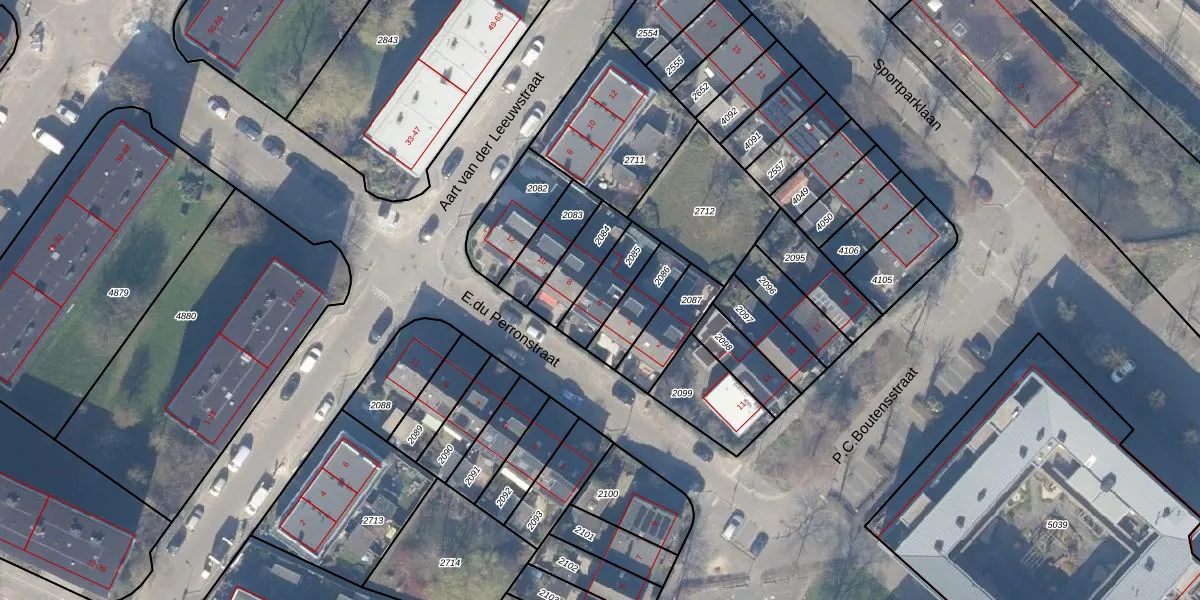 Gebruik de zoekbalk of klik op een perceel voor informatie over de adressen binnen dit perceel.