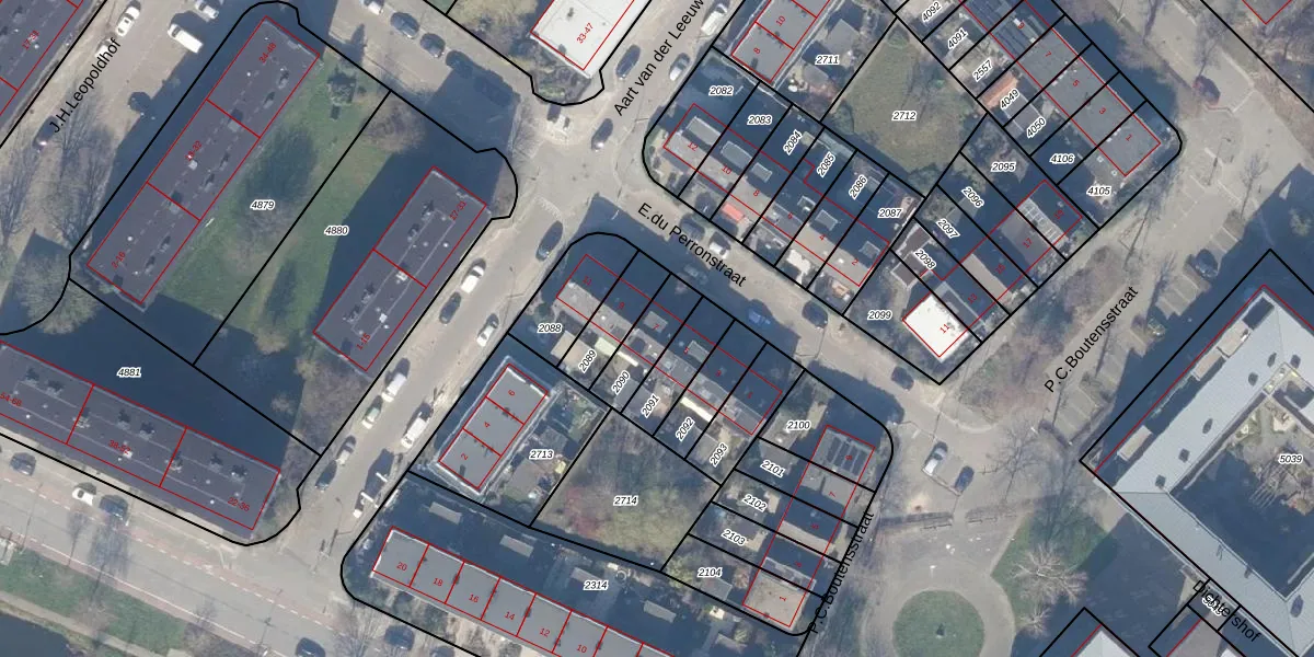 Gebruik de zoekbalk of klik op een perceel voor informatie over de adressen binnen dit perceel.