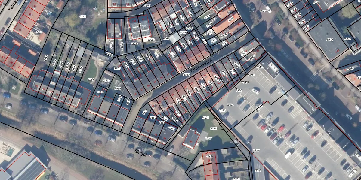 Het perceel waarop Emmastraat 17 staat heeft een oppervlakte van 72 m². Dit is een klein perceel. De perceeloppervlakte wordt geregistreerd door het Kadaster. Gedetailleerde informatie over de maten van dit perceel kunt u vinden in het rapport Kadastrale kaart met maatvoering van Emmastraat 17.
