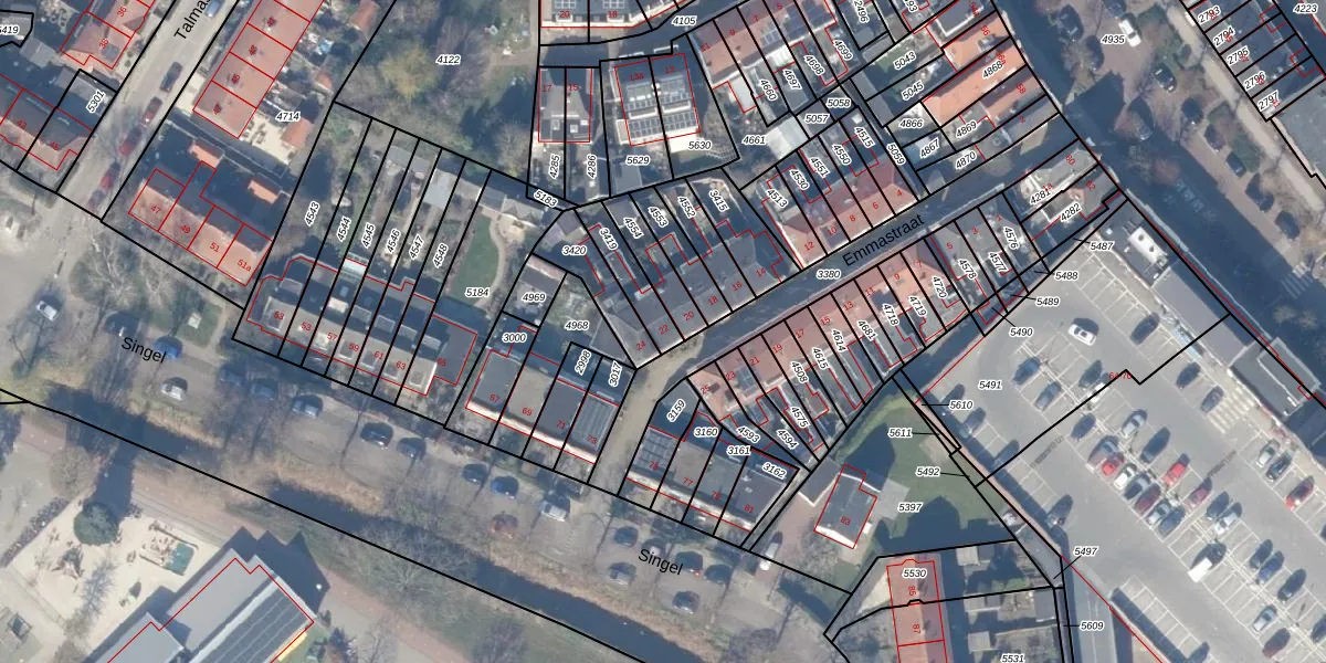 Het perceel waarop Emmastraat 22 staat heeft een oppervlakte van 105 m². Dit is een middelgroot perceel. De perceeloppervlakte wordt geregistreerd door het Kadaster. Gedetailleerde informatie over de maten van dit perceel kunt u vinden in het rapport Kadastrale kaart met maatvoering van Emmastraat 22.