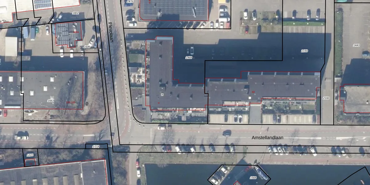 Het perceel waarop Flevolaan 2-s staat heeft een oppervlakte van 4123 m². Dit is een zeer groot perceel. De perceeloppervlakte wordt geregistreerd door het Kadaster. Gedetailleerde informatie over de maten van dit perceel kunt u vinden in het rapport Kadastrale kaart met maatvoering van Flevolaan 2-s.