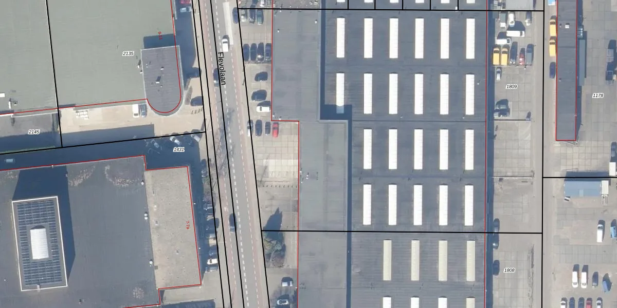 Het perceel waarop Flevolaan 32 staat heeft een oppervlakte van 6873 m². Dit is een zeer groot perceel. De perceeloppervlakte wordt geregistreerd door het Kadaster. Gedetailleerde informatie over de maten van dit perceel kunt u vinden in het rapport Kadastrale kaart met maatvoering van Flevolaan 32.