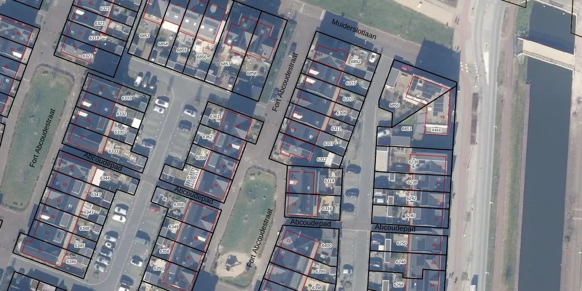 Gebruik de zoekbalk of klik op een perceel voor informatie over de adressen binnen dit perceel.