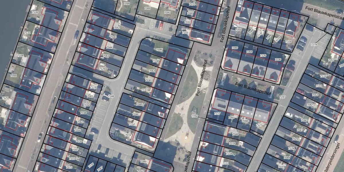 Het perceel waarop Fort Blauwkapelhof 21 staat heeft een oppervlakte van 174 m². Dit is een middelgroot perceel. De perceeloppervlakte wordt geregistreerd door het Kadaster. Gedetailleerde informatie over de maten van dit perceel kunt u vinden in het rapport Kadastrale kaart met maatvoering van Fort Blauwkapelhof 21.