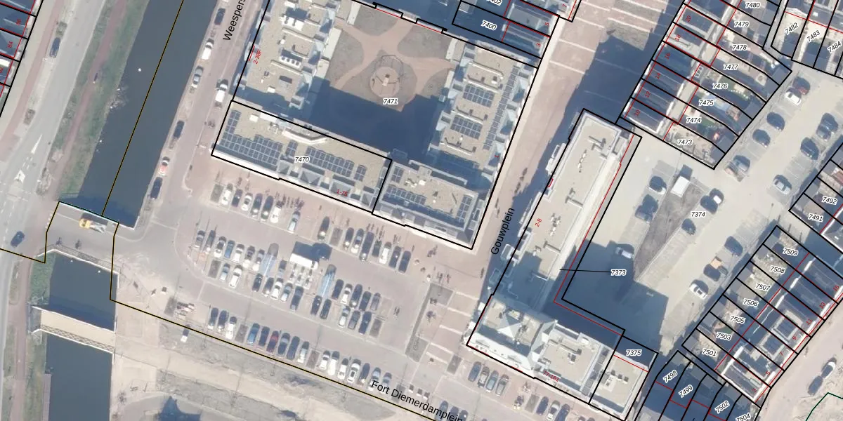 Het perceel waarop Fort Diemerdamplein 49 staat heeft een oppervlakte van 2475 m². Dit is een zeer groot perceel. De perceeloppervlakte wordt geregistreerd door het Kadaster. Gedetailleerde informatie over de maten van dit perceel kunt u vinden in het rapport Kadastrale kaart met maatvoering van Fort Diemerdamplein 49.