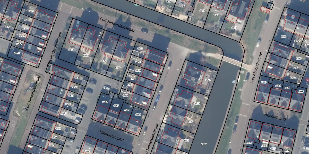 Fort Hinderdamstraat 21 is gelegen op kadastraal perceel WEE02B6470. Deze kadastrale aanduiding is uniek en wordt gebruikt door het Kadaster om eigendomsrechten en andere zakelijke rechten vast te leggen. Het perceel maakt onderdeel uit van de kadastrale gemeente Weesp.