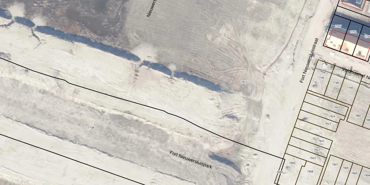 Het perceel waarop Fort Nieuwersluispark 14 staat heeft een oppervlakte van 5,9 ha. Dit is een zeer groot perceel. De perceeloppervlakte wordt geregistreerd door het Kadaster. Gedetailleerde informatie over de maten van dit perceel kunt u vinden in het rapport Kadastrale kaart met maatvoering van Fort Nieuwersluispark 14.